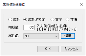 属性名を指定して、選択したブロック内の属性を順の連番に変更します。